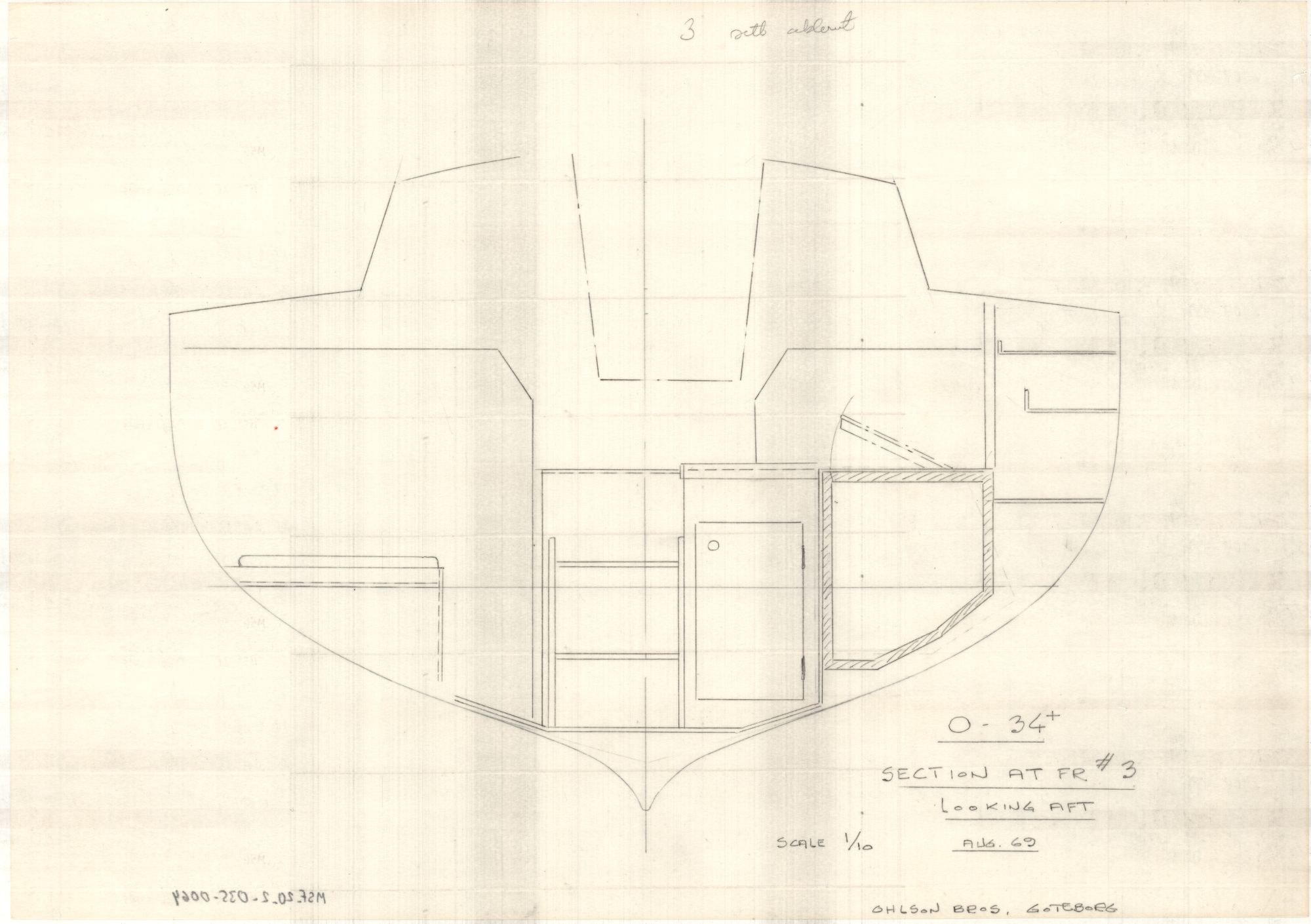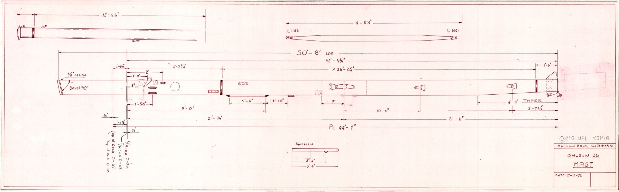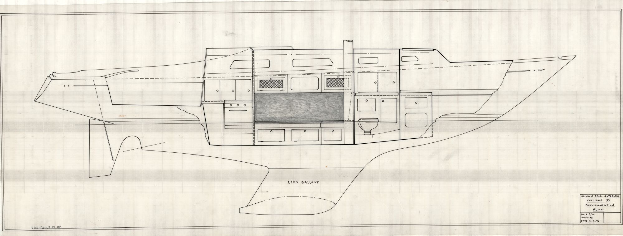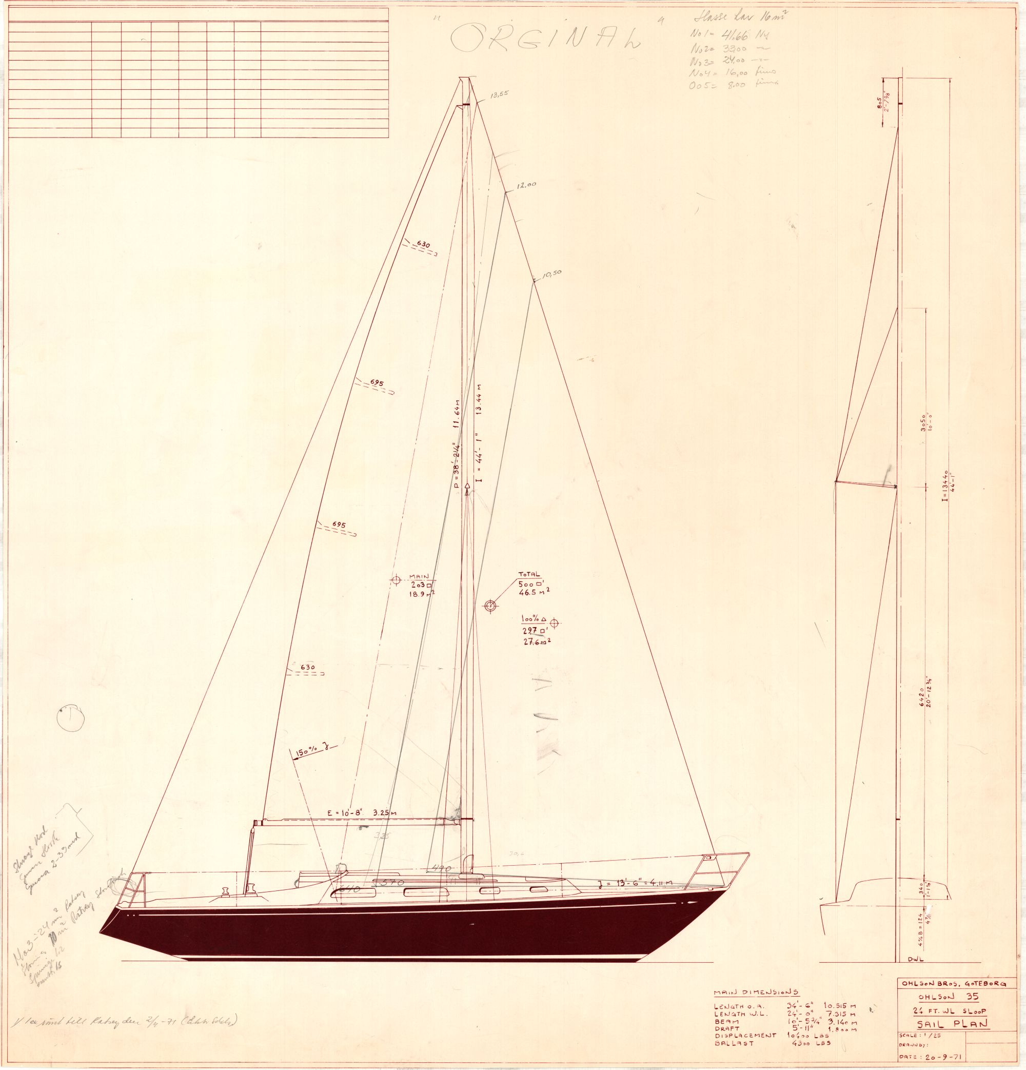 O-35, Sail plan, sloop, copy, annotations, “original” |