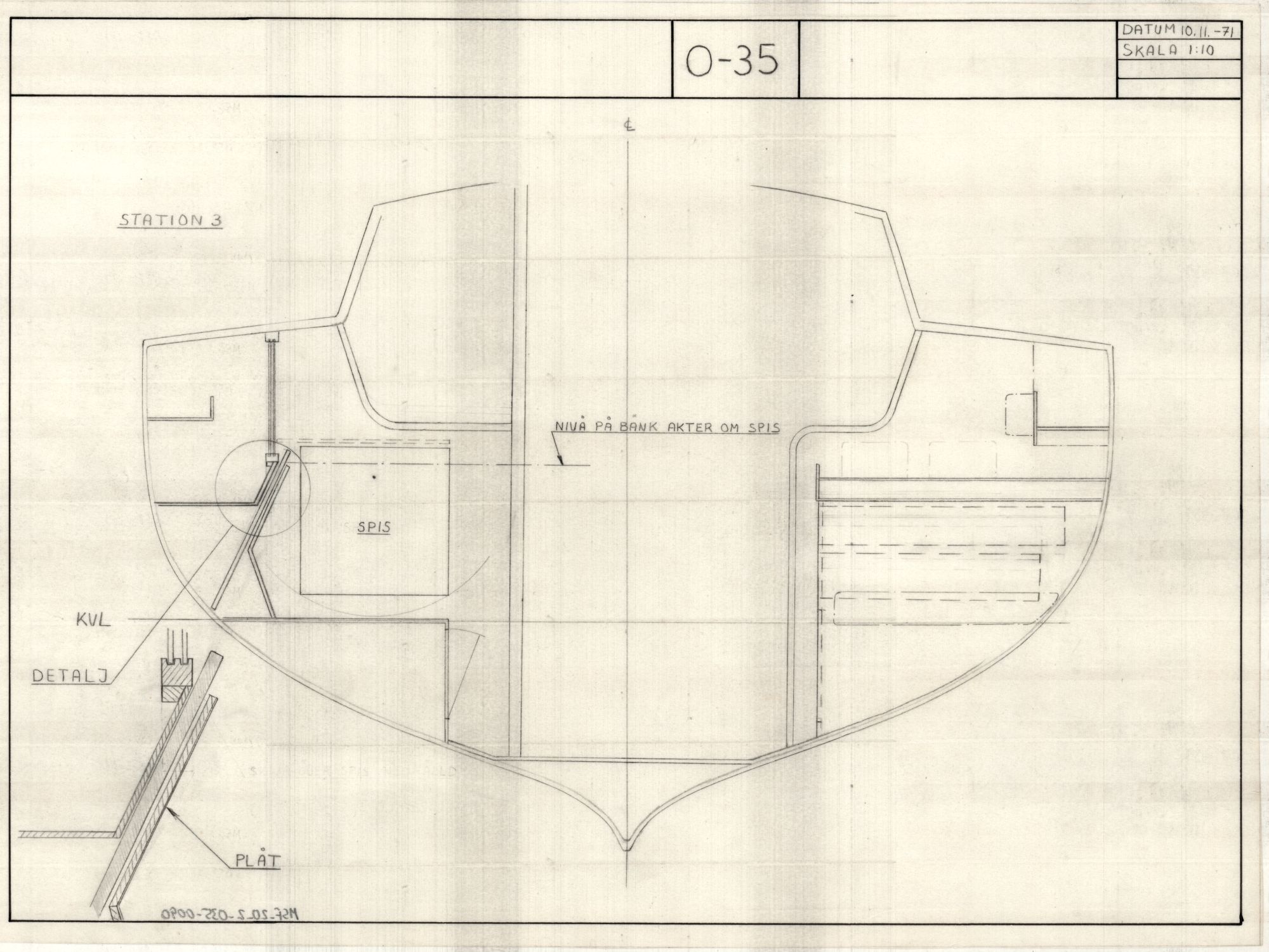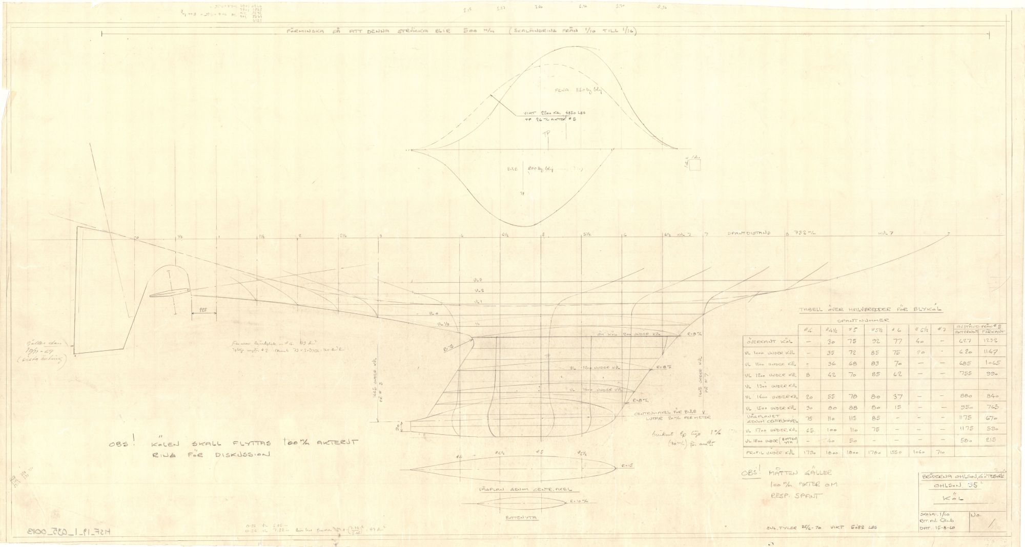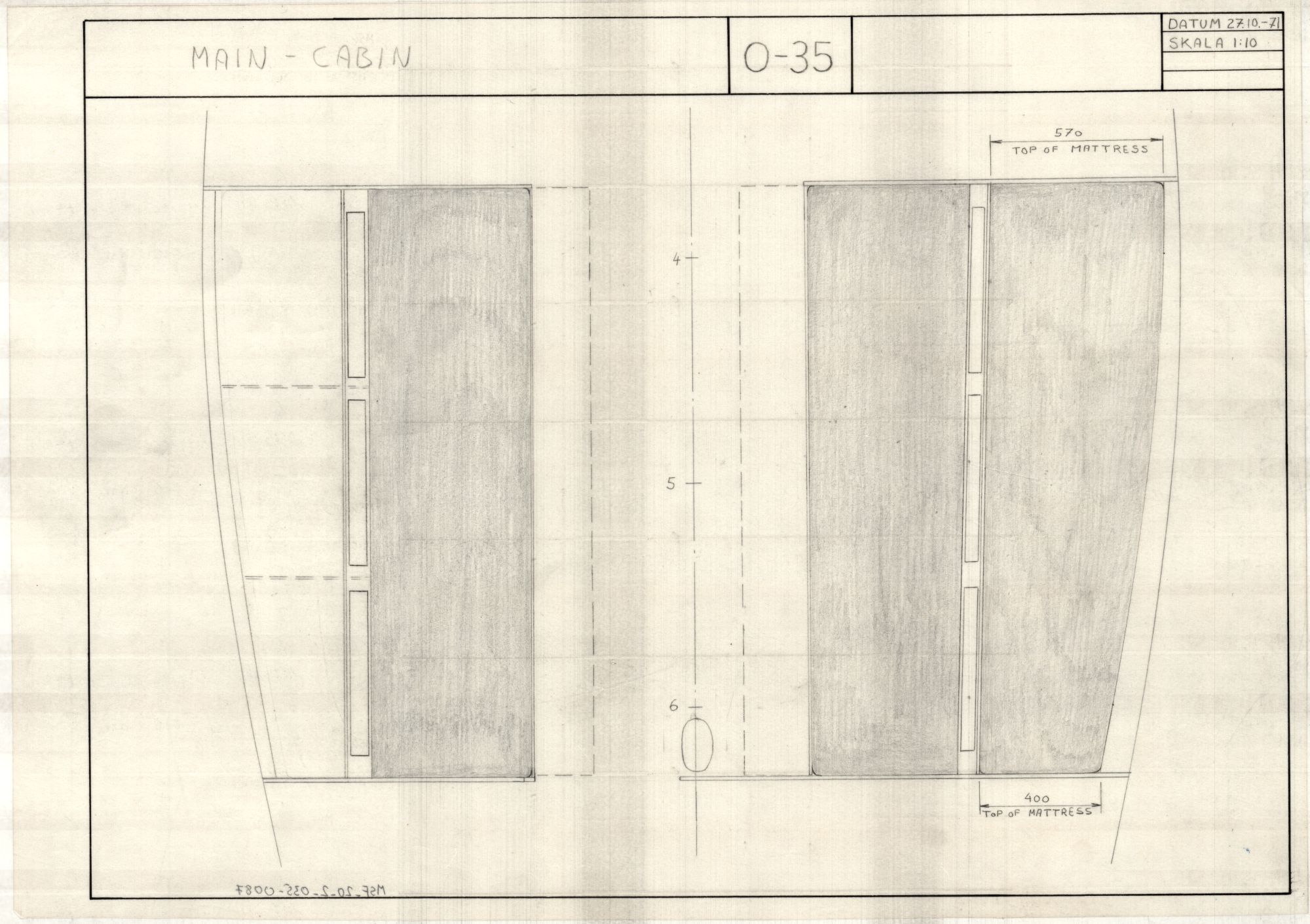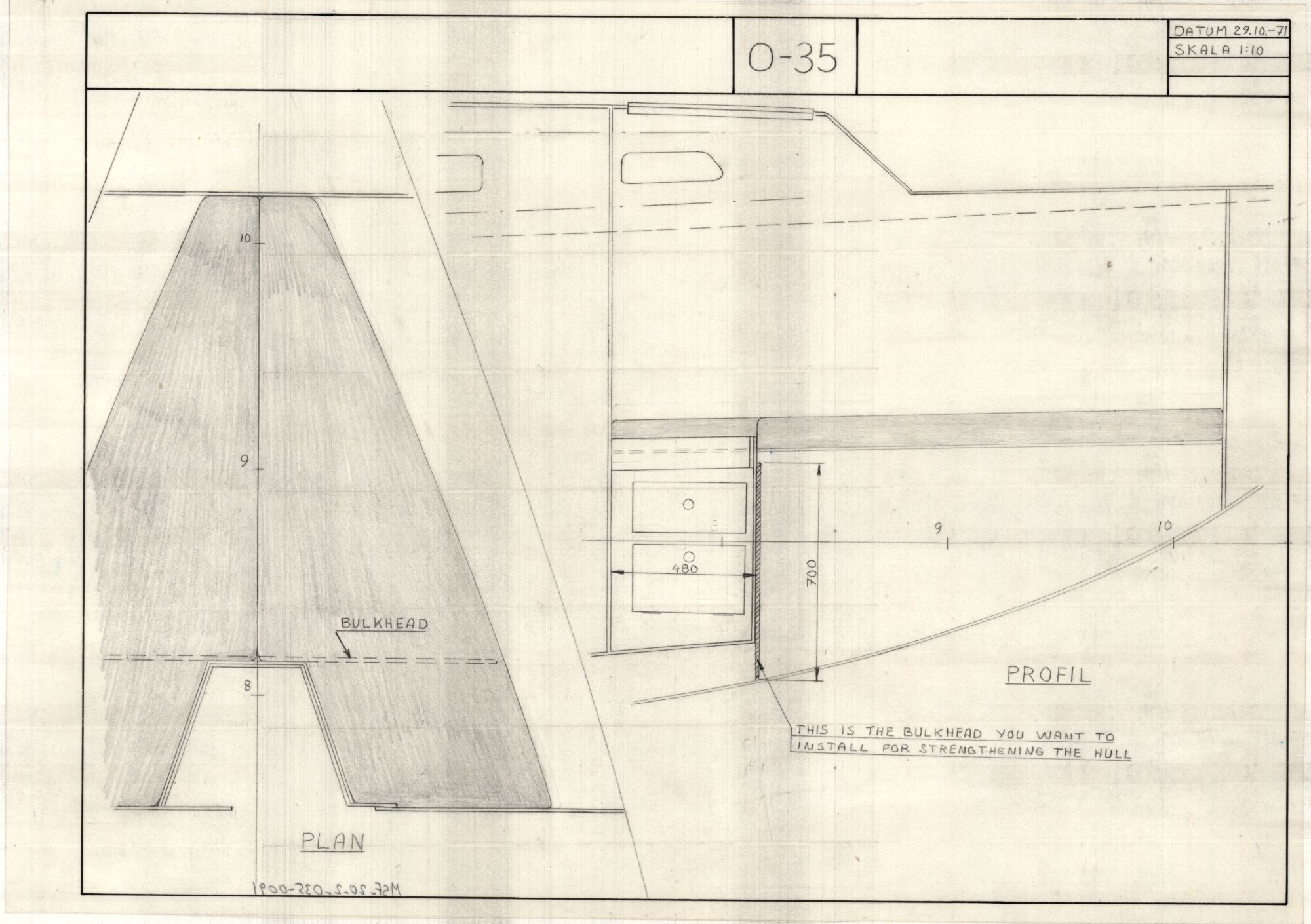 O-35, Sail plan, sloop, copy, annotations, “original” |