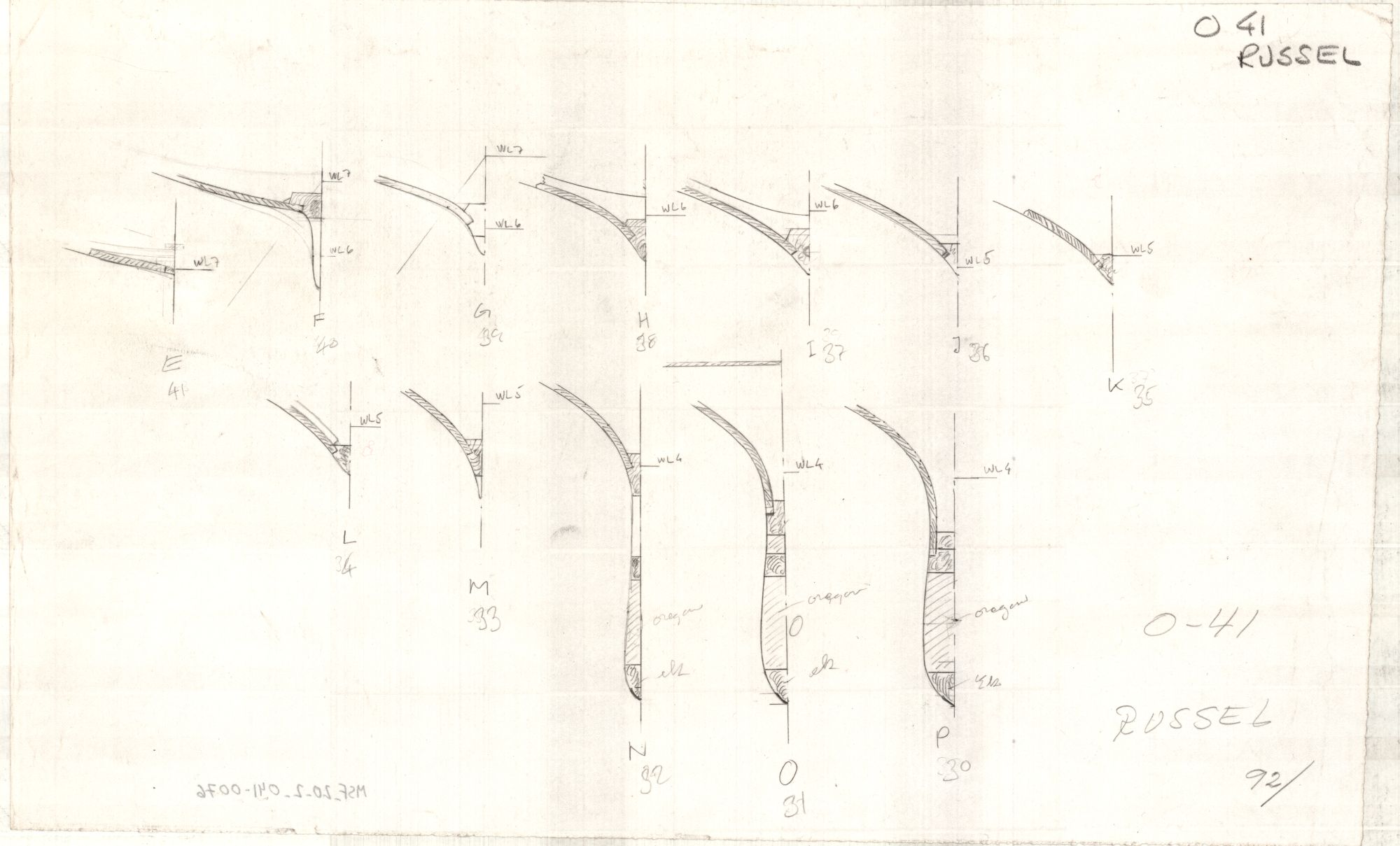 Details on keel profiles, Frames #30-#41, for Mr. Russel |